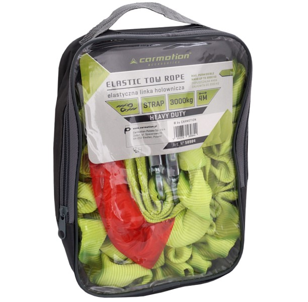 CARMOTION Linka holownicza DMC do 3000 kg taśmowa elastyczna z hakami, 4 m, Heavy Duty