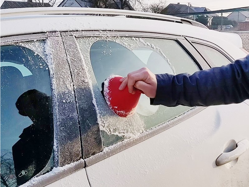 Skrobaczka w kształcie stożka pozwoli na szybkie i bezwysiłkowe usunięcie szronu bez ryzyka porysowania szyb.