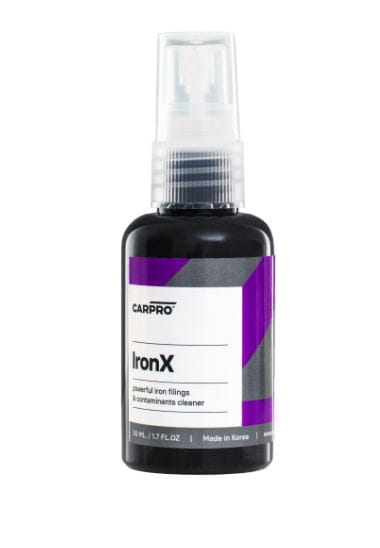 CarPro IronX – to zaawansowany produkt o neutralnym pH, przeznaczony do usuwania zanieczyszczeń metalicznych takich jak – pył z klocków hamulcowych, lotna rdza i inne zanieczyszczenia pochodzenia metalicznego. Produkt może być stosowany na lakier, tworzywa sztuczne, chromy, szkło oraz felgi aluminiowe.