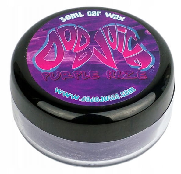 Miękki wosk naturalny którego głównymi składnikami jest specjalna odmiana Carnauby, wosk Montan oraz ciemny wosk pszczeli. Wosk jest dedykowany do ciemnych lakierów takich jak: czarny, granatowy, ciemna zieleń itp. . Jego nieprzeciętne właściwości zapewnią niewiarygodne wydobycie głębi ciemnego koloru, oraz wysoki połysk. Ciemny lakier wymaga specjalnego traktowania i aby zachować jego piękny kolor potrzebny jest wosk najlepszej jakości – taki właśnie jest Dodo Juice Purple Haze. Poza walorami estetycznymi wosk chroni lakier przed promieniami UV, kwaśnym deszczem, ptasimi odchodami, solą. Gwarantowany efekt kropelkowania wody.