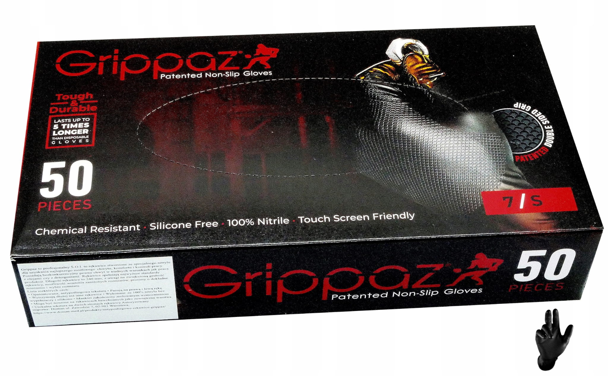 Grippaz rękawice nitrylowe roz. S black 50szt 246
