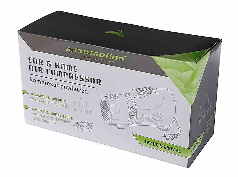 Można nim napompować oponę bez demontażu koła, co znacznie wpływa na komfort i pozwala zaoszczędzić czas. Został wyposażony w cyfrowy ciśnieniomierz z podświetlanym wyświetlaczem – można w nim ustawić ciśnienie docelowe po osiągnięciu którego kompresor automatycznie przestanie pompować.
