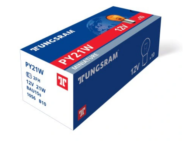 Jednoświatłowe, żarówki PY21W marki Tungsram. Emitują żółte światło i